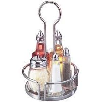 Conveniently transported to the table in their own steel caddy, oil, vinegar, grated cheese, salt, and pepper can season your salad to perfection. The styling is reminiscent of Italian trattorias and small restaurants, which may give your kitchen that little semi-professional touch you were looking for.